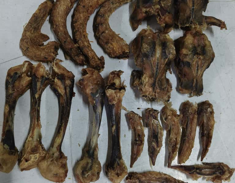 Ingredients: Dehydrated chicken neck, thigh bones, carcass cut pieces, wing tips